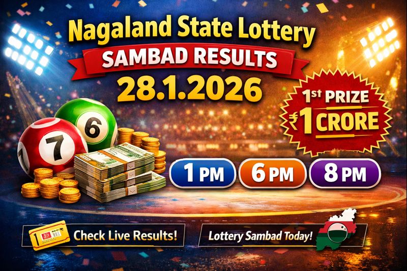 The Nagaland State Lottery Sambad for January 28, 2026, will be announced at 1 PM, 6 PM, and 8 PM. The most popular evening draw, “Dear Hawk Evening”, offers a first prize of ₹1 crore, attracting participants from across India.